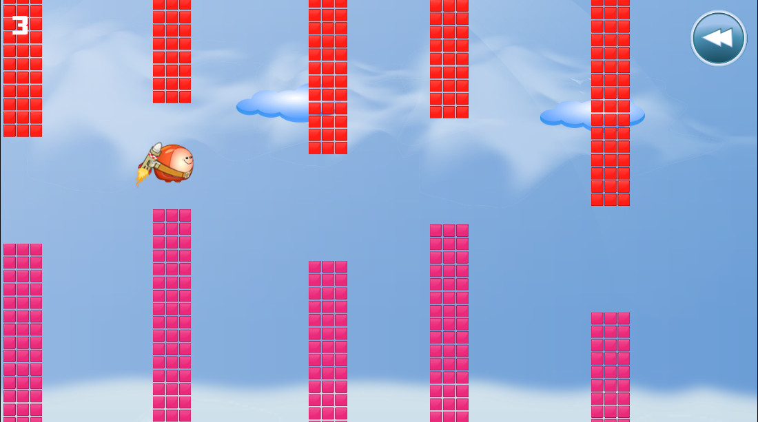 You are a very cute strange little creature traveling across the land with a jetpack! But because you don't have a lot of money, your jetpack is not the best quality — it can only boost for short bursts of time. Do your best to fly past all the obstacles and get as far in the game as possible!
