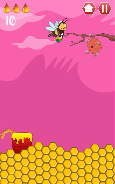Bees are very hardworking and produce a lot of honey. But they can't always get the honey to the right place, so you need to help the bees drop the honey into the pot! Wait for the right moment, then release the honey! If you miss, you'll lose a life, so be careful — you only have 5 lives!