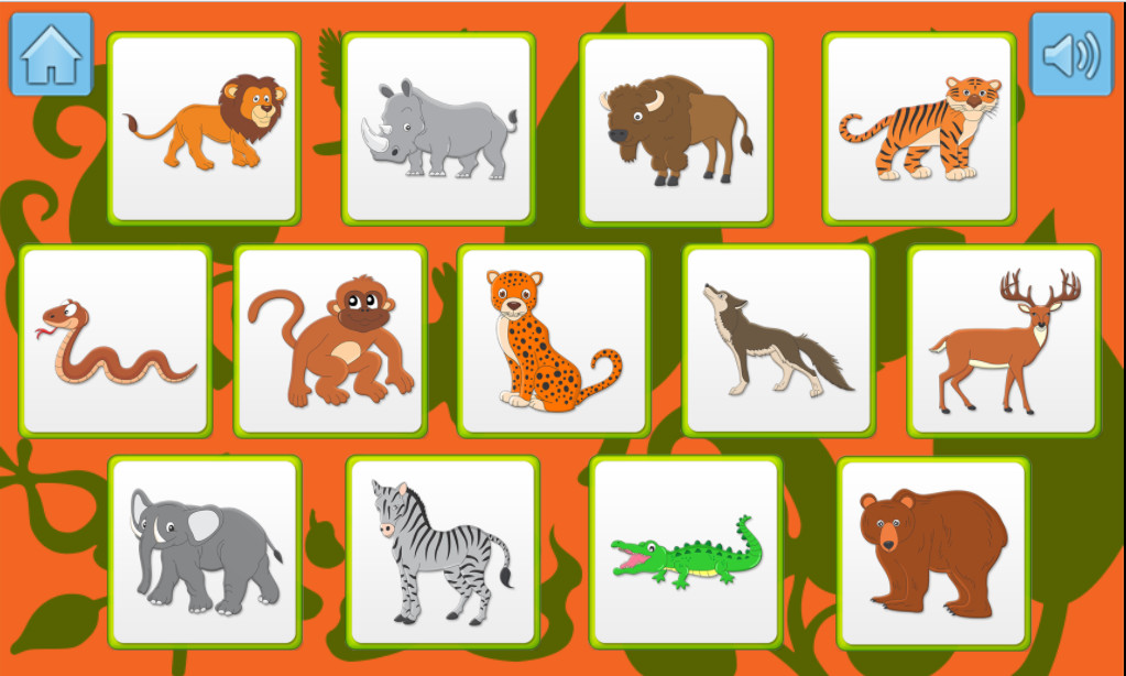 This children's game about wild animals can be very helpful in teaching young children and training their memory. The game has 4 modes: Learning mode — in this mode you can view all the cards and hear the names of the animals.