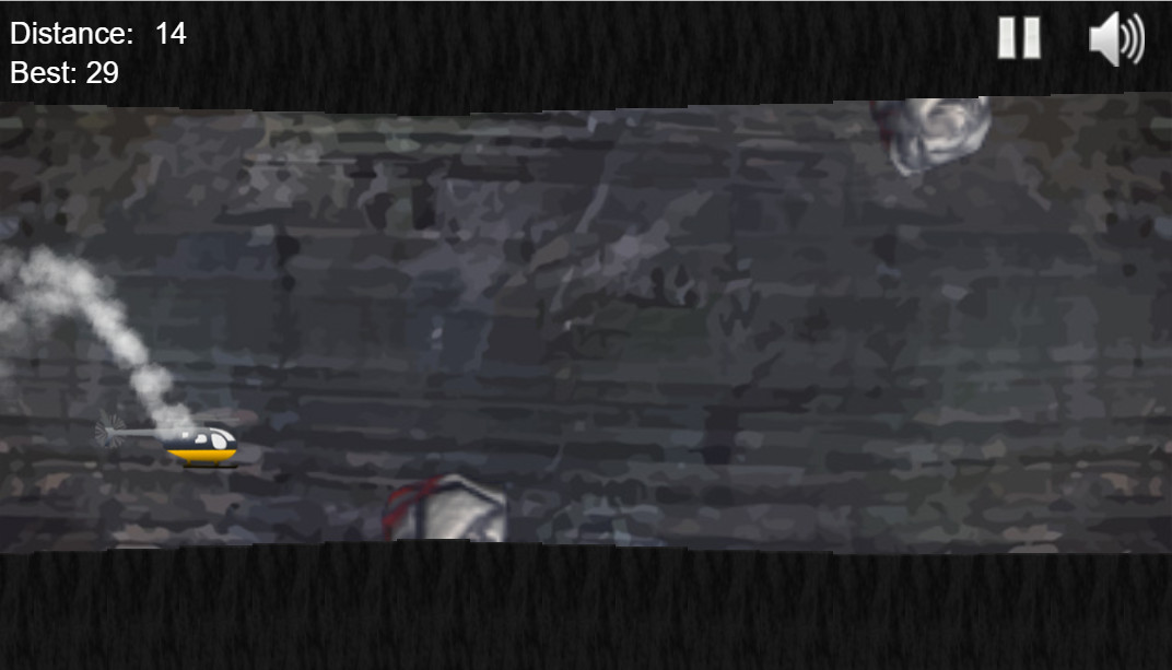 You are flying through a cave in a helicopter and there are many obstacles in your way! Try to go as deep into the cave as possible, avoiding obstacles and rocks above and below. Your helicopter moves forward and downward — tap the screen to go up. Try not to hit the rocks or the ceiling, or you will die!