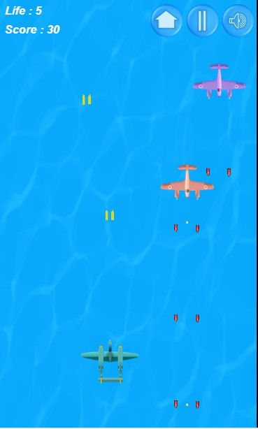 You control a plane that shoots automatically. Enemy fighters attack you, and you must destroy them. You only have three lives, so dodge their bullets skillfully. When you lose all your lives, you lose the game. With each level the game gets harder — try to kill as many enemies as possible and score the maximum number of points!