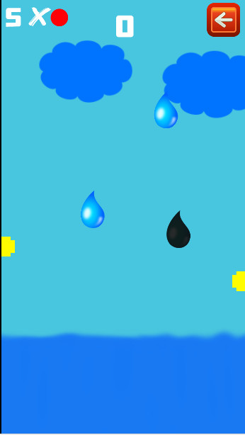 You control two unique cannons that can fire purifying bullets! Your task is to protect the sea from pollution caused by acid rain! You need to hit the dark polluted drops with your bullets to cleanse them before they reach the water surface. You lose if even one drop of polluted water reaches the sea. You also have a limited supply of ammunition, so try not to miss your shots. You will also lose if you miss 5 bullets. So try to score as many points as possible by cleansing the polluted raindrops!