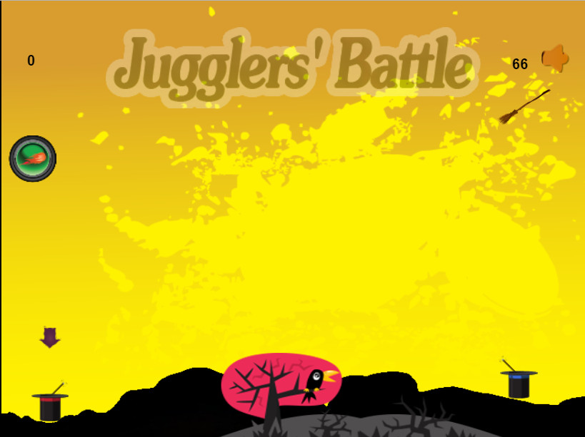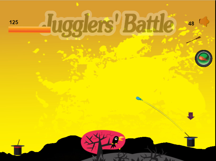 In this game you play as two wizards who hurl magical fireballs into each other's hats! The game has 14 different levels; in each one there is a hat on each side of the screen. When it is a player's turn, they must choose a direction and angle, then increase the shot power (press and hold the fireball button), and then release the button to send the fireball flying. Your goal is to hit the opponent's hat on the other side of the screen. If you manage to do so, you earn a point and advance to the next level. And don't forget the broom icon in the upper-right corner of the screen — it shows the wind direction and strength. You need to take those readings into account if you want to hit your target. Keep in mind that the game is very challenging, and you will need many attempts to win!