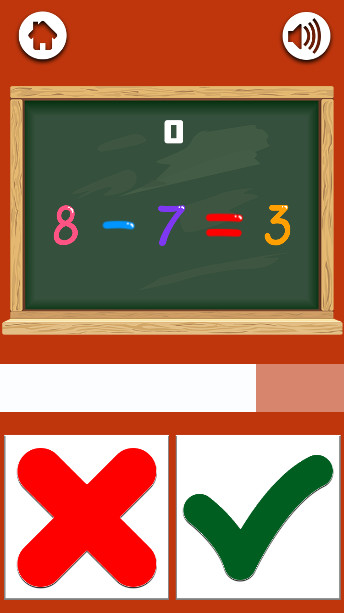 This game can also be used for teaching children mathematics. The game mechanics are simple, but playing it is harder than you think! A numerical expression will appear on the screen and you will have a limited time to select whether it is solved correctly or incorrectly. Each correct answer gives you one point, and your final score will be based on the number of correct answers. You lose if you choose the wrong answer or if the time runs out! As mentioned earlier, the game seems easy at first, but it gets harder and harder with every level.