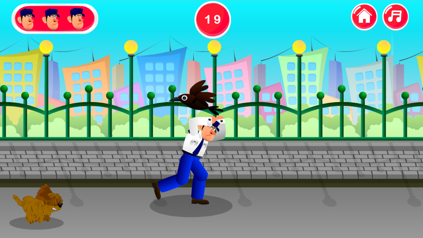 You are a postman and a vicious dog has attacked you. You must run away from it, dodging obstacles in the form of pits, barriers, and birds. The game explains how to easily dodge all obstacles and avoid becoming the angry dog's meal. Survive as long as possible and don't let the dog catch you.