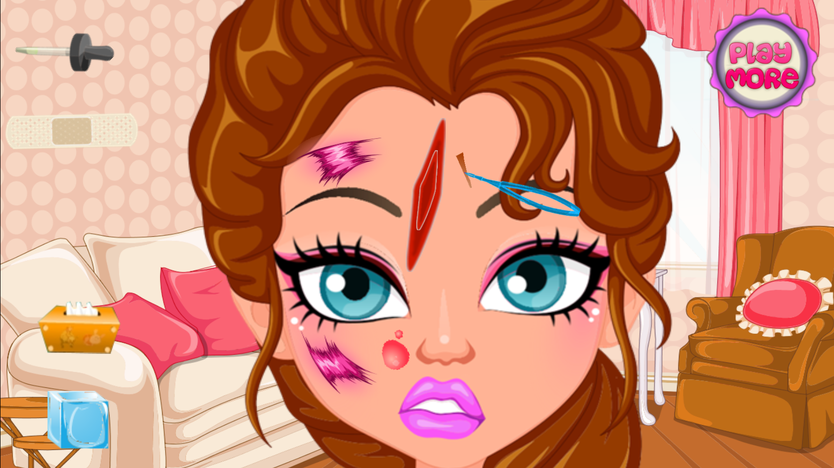 It looks like someone beat the girl up, or she slid face-first along the ground. But before figuring out how it happened, you need to treat her. You will need to clean all the wounds, and your instruments are there to help.