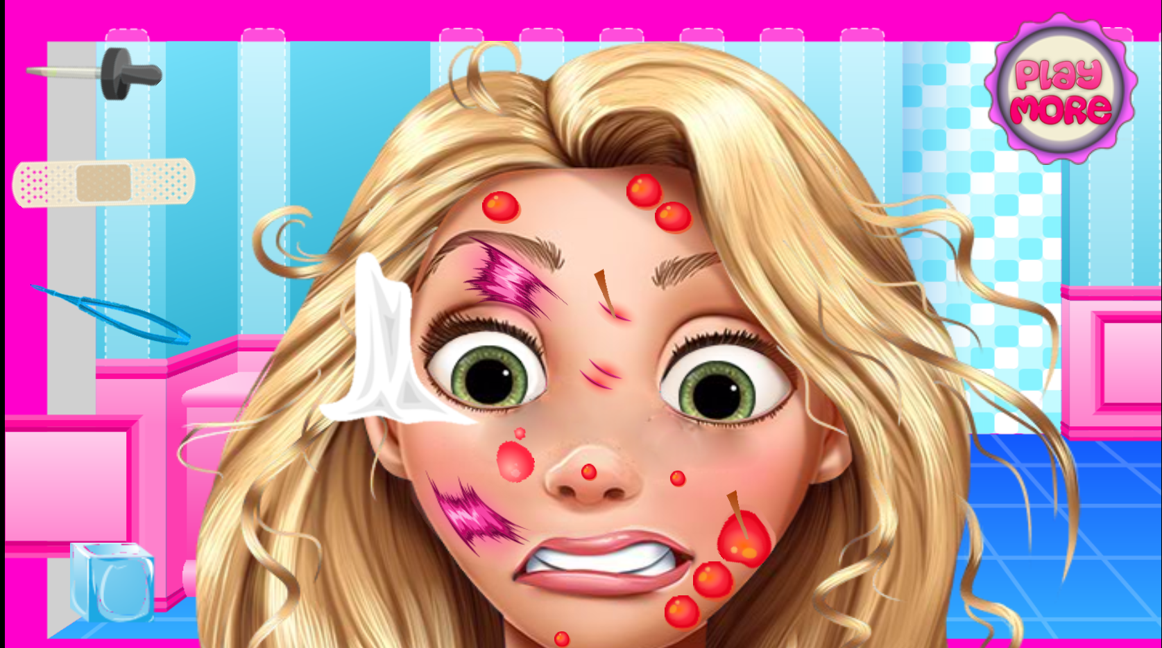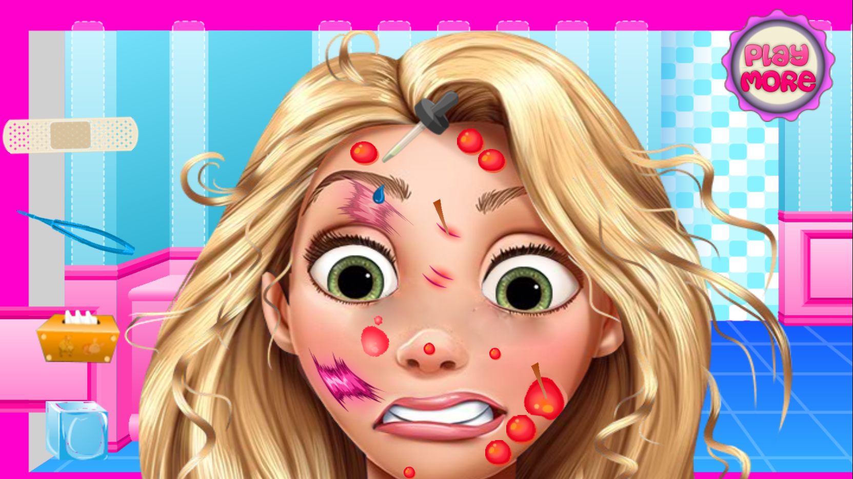 In Princess Face Doctor you need to heal the beautiful face of a Disney princess. Use the instruments to remove splinters and treat the wounds. Use the mouse to interact with the tools. The princess will be very grateful to you!